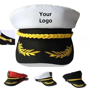 Navy sailor hats with simple and classic design. The black visor can effectively block the sun, delicate golden embroidery and striking "captain" lettering on the front. The navy marine admiral hat decorated with peace olive branches and twisted ropes, fastened by simple gold-tone metal buttons. Simple and bright color scheme makes you stand out in crowds as a play the role of captain, add a air of confident and positive.This cruise ship hats is an adjustable strap on the back of the sailor hat, you can adjust them to a comfortable tightness according to different head size, not put much pressure on your head. These white sailor hats are suitable for most kids, teens and adults. Adjustable yacht hats for men women